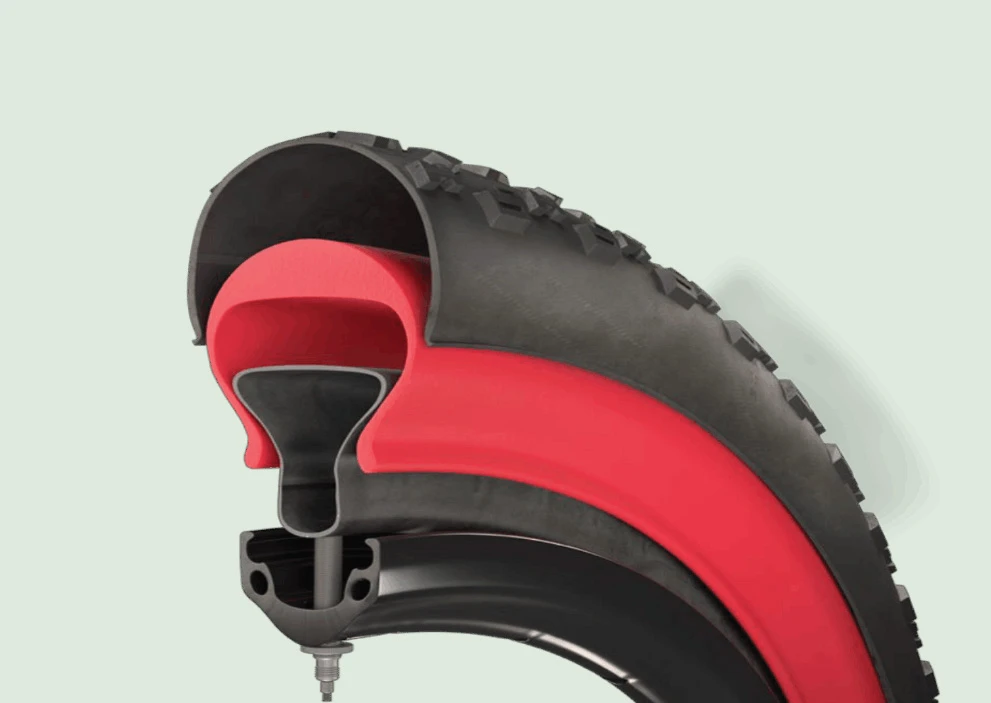 La guaina rossa, composta da una miscela di polimeri, protegge il copertone a 360° e permette di avere una riduzione delle forature fino al 90%.